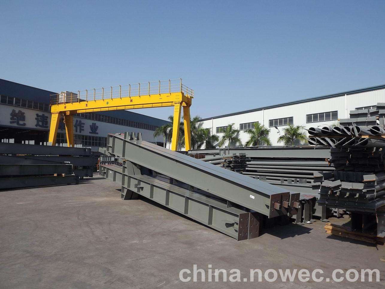 条状单元一般沿长跨方向分割,其宽度约为1~3个网格,其长度为l2或l2/2(l2为短跨跨距)。块状单元一般沿贵港网架平面纵横向分割成矩形或正方形单元。每个单元的重量以现有起重机能胜任为准。条(块)与条(块)之间可以直接拼装,也可空一网格在高空拼装。由于条(块)状单元是在地面拼装,因而高空作业量较高空散装法大为减少,拼装支架也减少很多,又能充分利用现有起重设备,故较经济。这种安装方法适用于分割后网架的钢度和受力状况改变较小的各类中小型网架,如两向正交正放四角锥、正放抽空四角锥等网架。